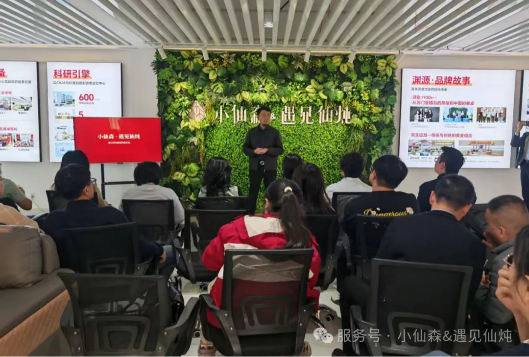 小仙森&遇见仙炖品牌创始人李大伟带领大家参观了上海运营中心,并向大家详细介绍了品牌故事、品牌发展历程及服务模式创新、加盟店扶持政策等,活动现场与会来宾并品鉴了品牌的新产品。